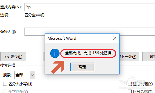 若是是批量去失落段落标识表记标帜,同样在适才的查找和替代对话框,此次勾选“段落标识表记标帜”,查找内容会主动变为“^p”,依旧点击全数替代即可完全批量去除;