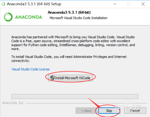 提醒安装Visual Studio Code,若是安装过了或者不想安装,直接点击“Skip”,如下图所示:
