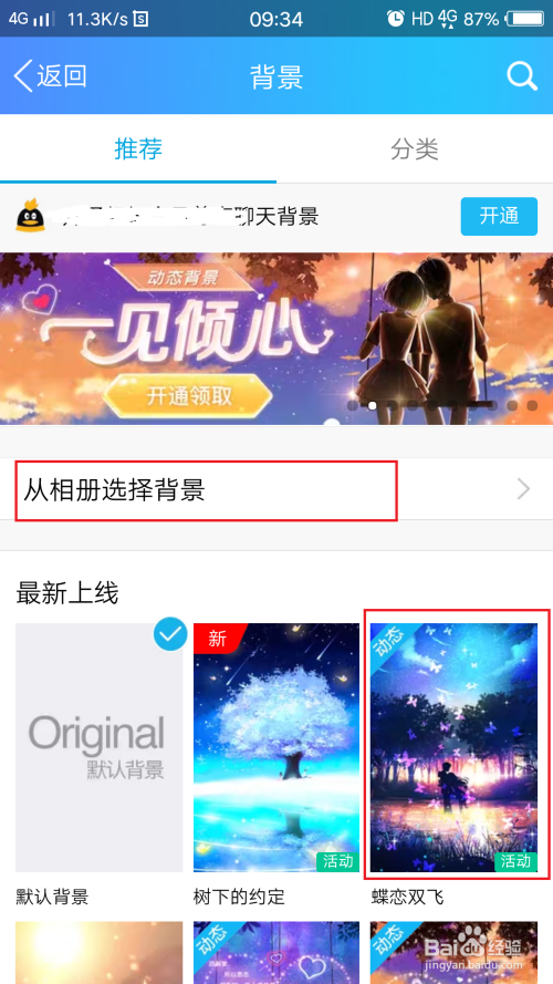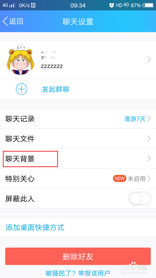 主动进入聊天设置,在聊天设置中找到“聊天布景”,用鼠标点击一下。