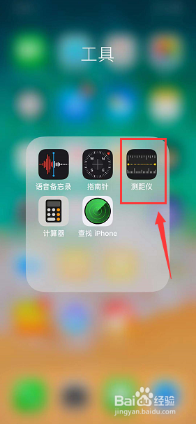 打开你手机上的东西文件夹,点击测距仪app进入,如下图所示