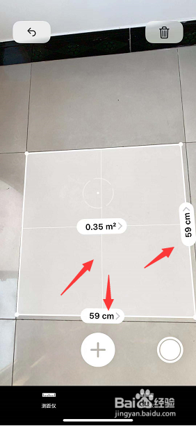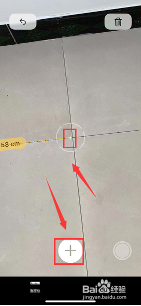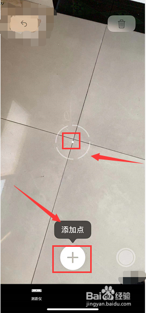 我们以测量一块地砖为例,在砖的一个角,点击加号,添加起点,如下图所示