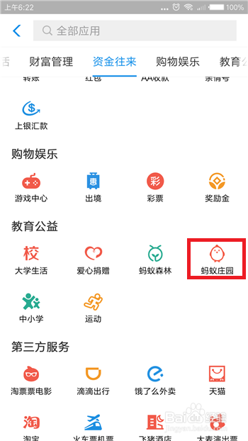 打开了付出宝的应用界面后大师就可以在【教育公益】的下方找到【蚂蚁庄园】应用了,点击打开应用。