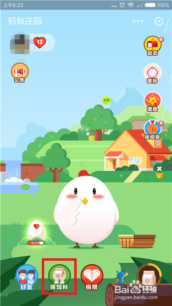 然后在蚂蚁庄园应用中找到并点击底部的【领饲料】选项。