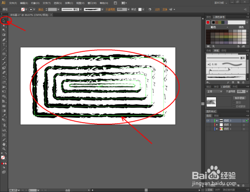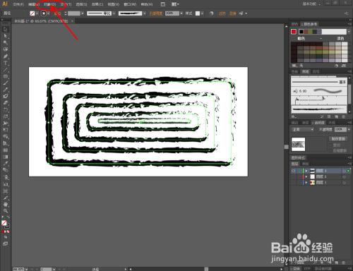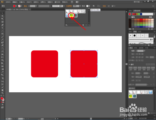 点击【选择东西】选中所有图案,点击菜单栏中的【对象】-【路径】-【轮廓化描边】,将所有圆角矩形框转换为曲线,然后完当作对矩形框颜色的改换(如图所示),如许圆角矩形作品便全数建造完当作。