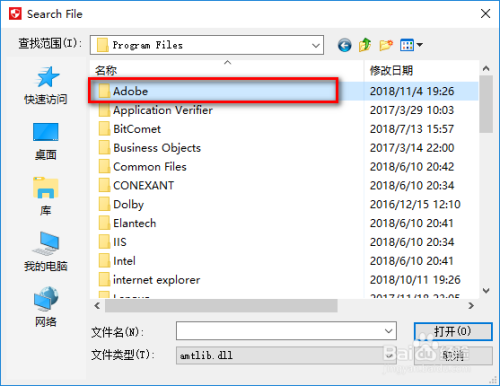 打开文件夹 ,右侧拉到最下面,当作功找到amtlib.dll文件,点击打开就可以了