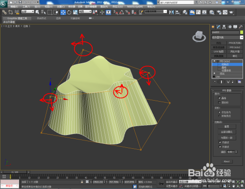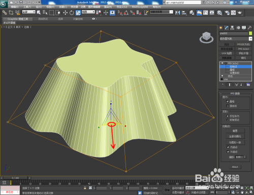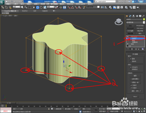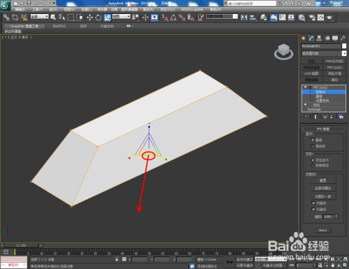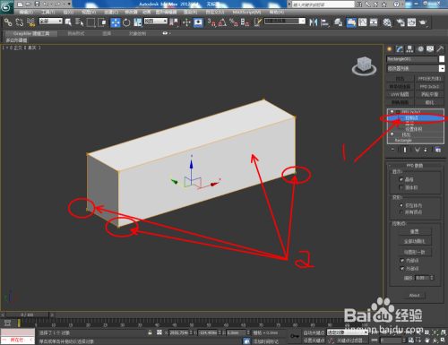 选中矩形,点击【点窜】-【挤出】,并设置好挤出数目。选中模子,点击【FFD2*2*2】,鼠标点击工作栏中的【节制点】后,选中底部四个节制点进行缩放(如图所示);