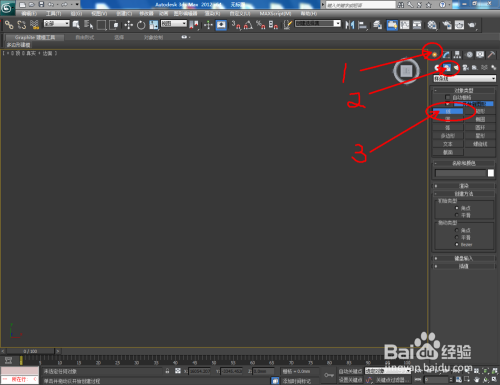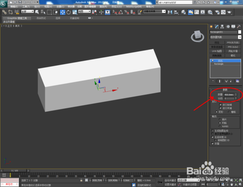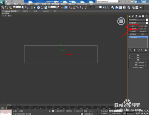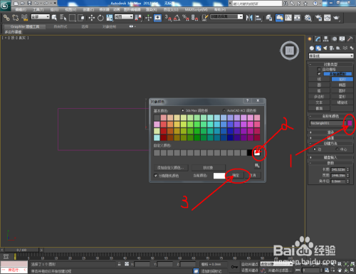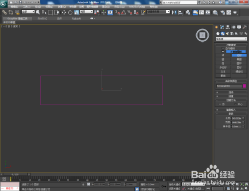打开3Dmax2012软件,点击【建立】-【图形】-【矩形】,在作图区域绘制一个矩形图案,并将【对象颜色】设置为白色;