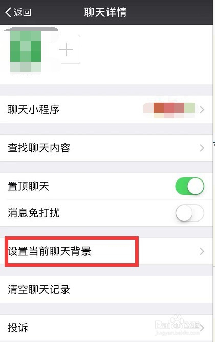 进入设置界面后,滑动到最后,看到有“设置当前聊天布景”,点击进入