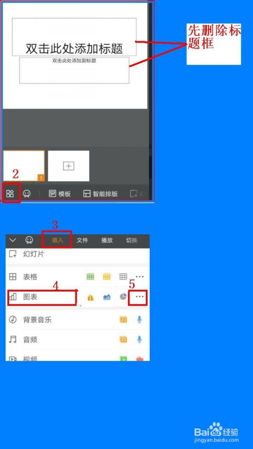 第三步,先把新建幻灯片中默认的题目框去失落——点击左下角的编纂图标——选择插入——点击选择图标中最右侧的···图标(更多选项)