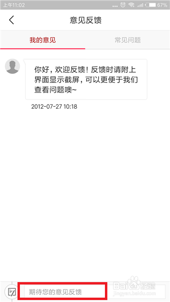 然后在我的定见下方点击输入栏,如许可以打开定见反馈的输入界面。