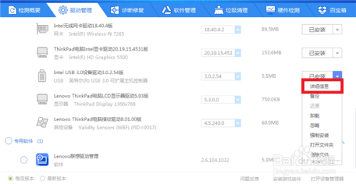在驱动的后方点击【已安装】的下拉三角箭头,在呈现的选项中选择【具体信息】。