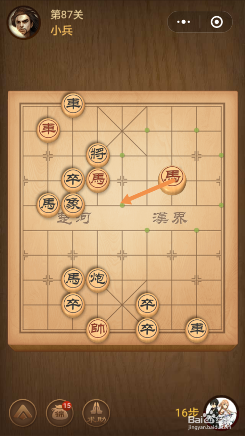 第三步馬移动到下图中箭头标注的位置就过关了。