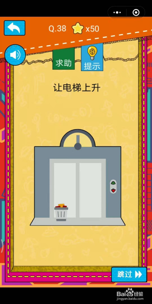 微信最壮大脑ol第38关攻略:移走左边的桶,将桶后面的绿色按钮移动到电梯右边,点击绿色按钮。