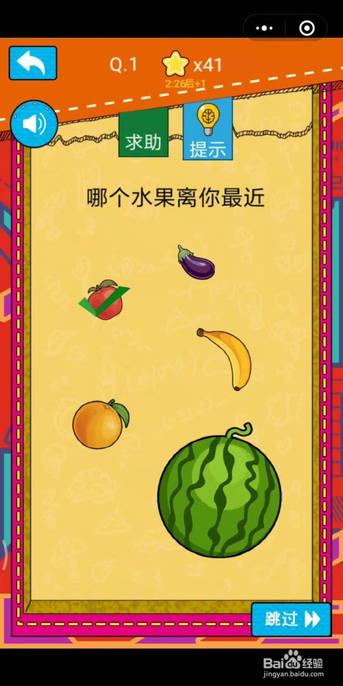 微信最壮大脑ol第1关攻略:离标题问题中的’你‘比来的生果是:苹果