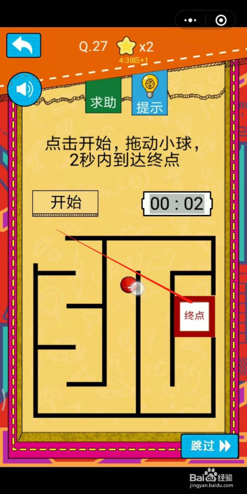 微信最壮大脑ol第27关攻略:点击起头,直接把小球移动到终点就可以,不消走迷宫