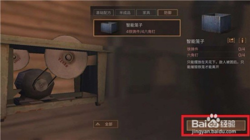 学会了笼子配方后就可以在防御的下方找到【笼子】,点击笼子可以在右侧看到具体信息,而想要知道建造材料的话需要点击【获取建造材料】。