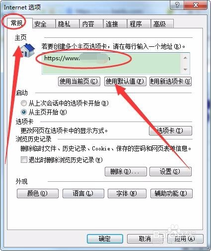 回到常规选项卡,在本家儿页选项框中,设置本身想要的本家儿页网址,单击应用按钮。