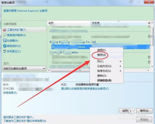 右侧找到所有可疑的插件,右键选择禁用。