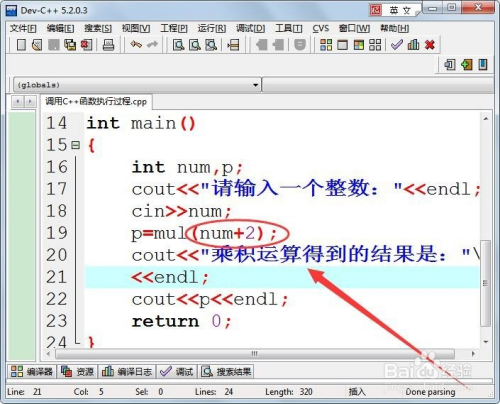 本家儿函数中,首先计较现实参数的值,本例中先计较num+2的值。