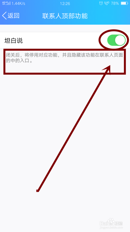 在联系人顶部功能,点击封闭率直说右侧的开关即可,如图所示
