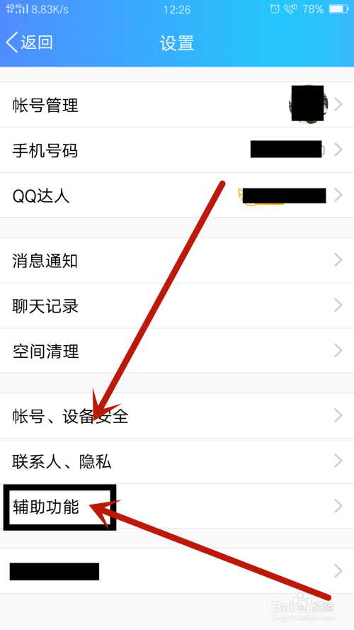在菜单列表中,点击进入QQ设置页面,如图所示
