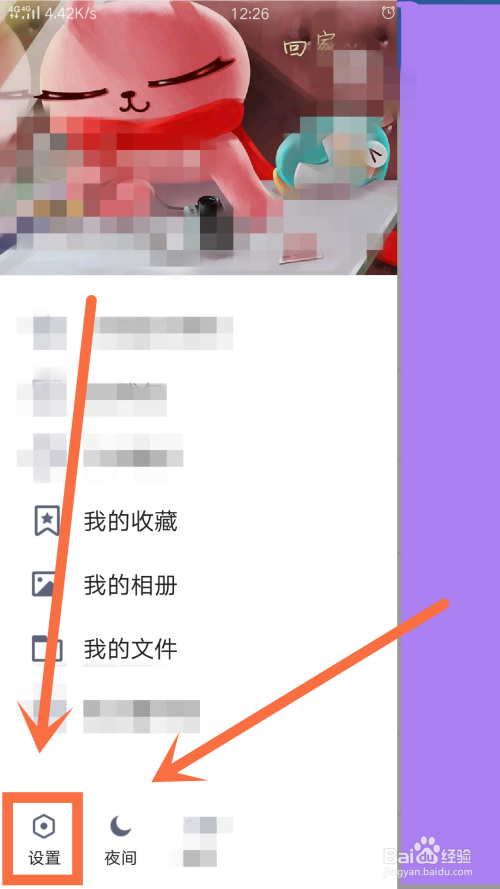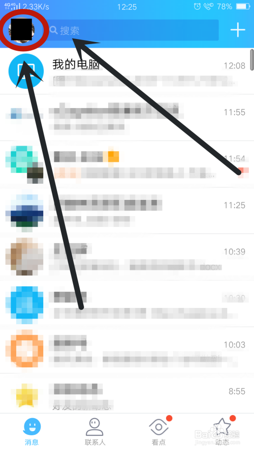 在手机QQ中,点击头像,进入菜单列表,如图所示