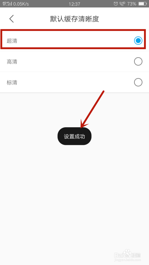 在软件设置中,点击打开默认缓存清楚度设置,如图所示