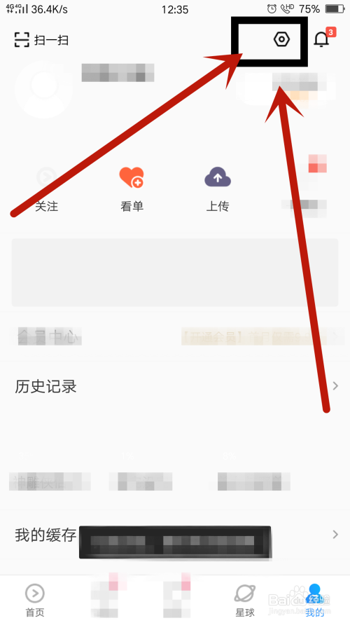 在我的小我中间页面,点击进入右上角软件设置,如图所示