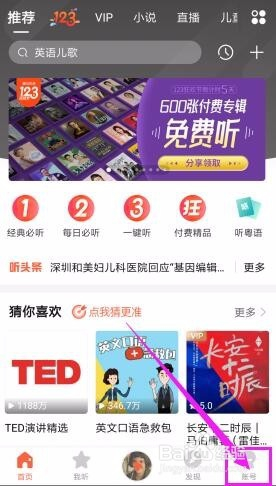 进入首页后,点击底部的【账号】。