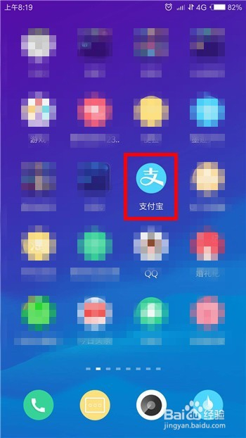 首先在手机的桌面上找到付出宝并点击打开,如图所示。