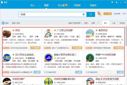 我们可以看到所有有关旅游的QQ群都在列表中显示出来了,如图所示;