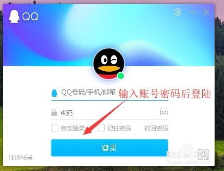首先打开QQ软件,在登录页面内输入本身的账号和密码并进行登录,如图所示;