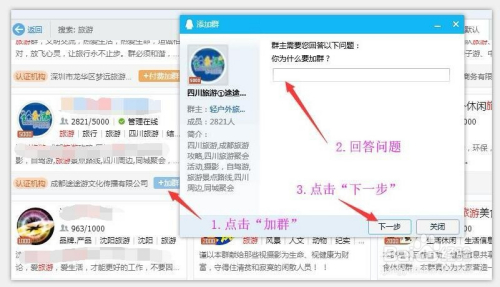 我们选择本身要插手到QQ群,回覆问题后颠末群本家儿的赞成就可以进入该群和别人交流了,如图所示。