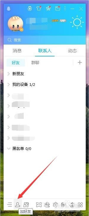登录当作功后我们进入到QQ的本家儿界面,在软件的最下端我们可以看到有一个"加老友"选项,如图所示;