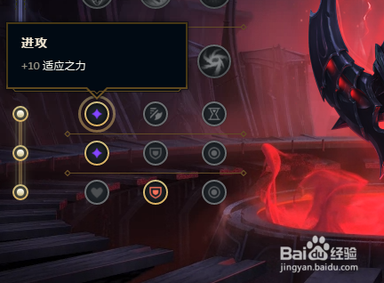杰斯在属性符文的选择上,点出进攻和矫捷层中的顺应之力帮忙杰斯增添进犯力。防御层点出护甲,当然对阵AP也可以带魔抗。