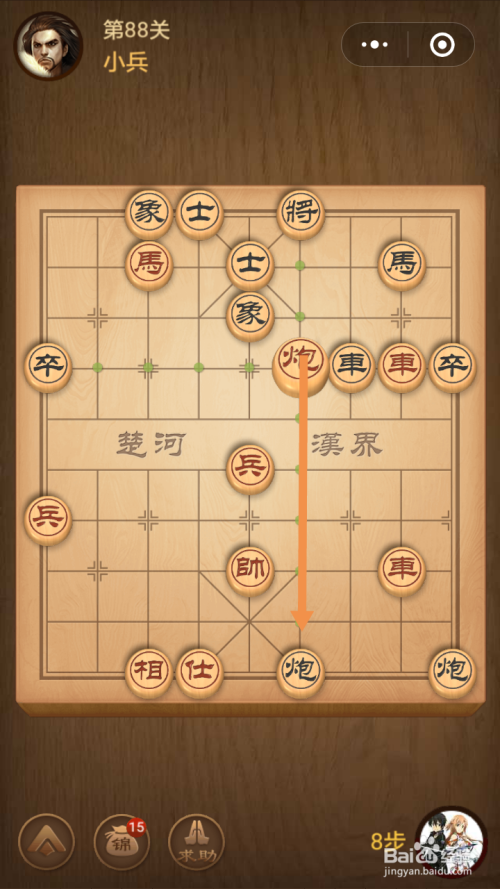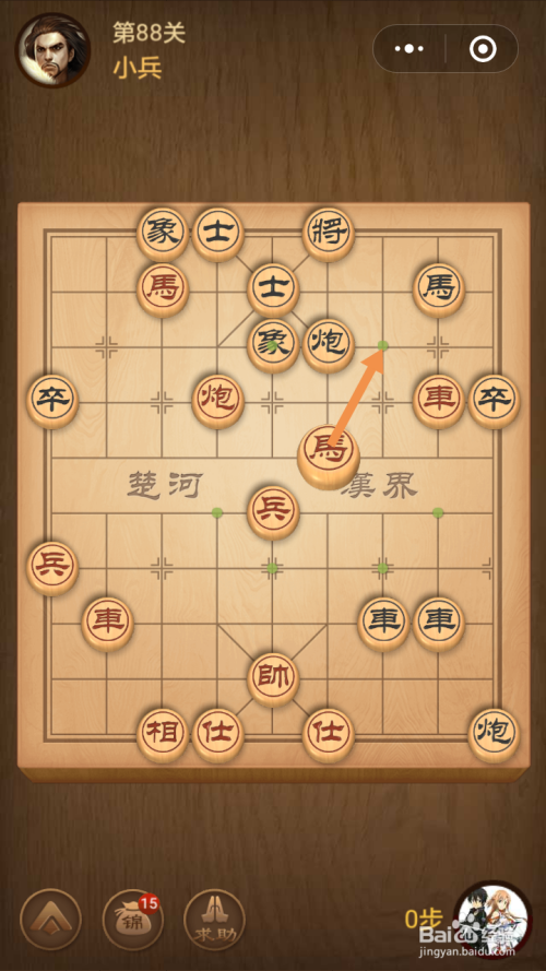 第88关第一步馬移动到下图中箭头标注的位置。