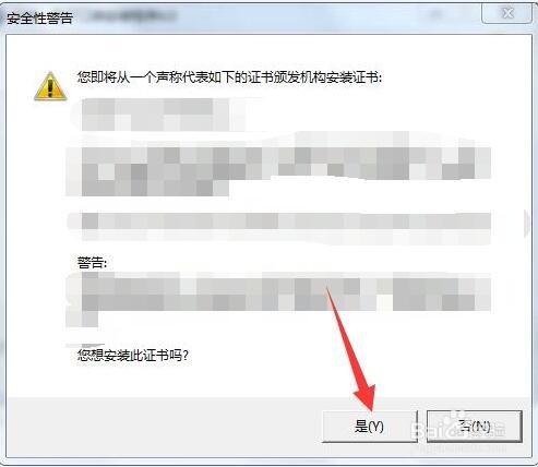 安装过程弹出平安性警告窗口,提醒需要安装证书,点击是。