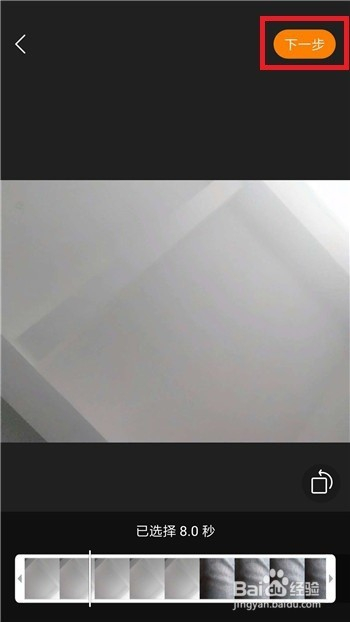 打开相册界面后选择适才保留的想要设置横屏的视频,然后点击【下一步】。