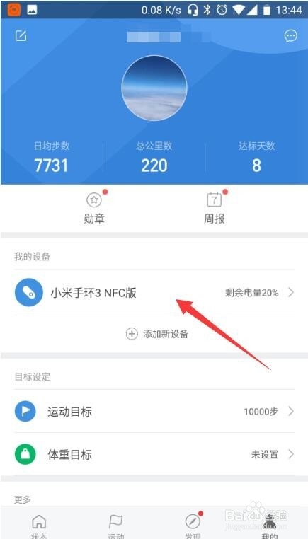 然后我们需要绑定本身的手环,这里我已经绑定好了,点击小米手环,进入手环的设置。