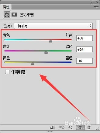 建立一个色彩均衡图层,设置其参数如下图所示。