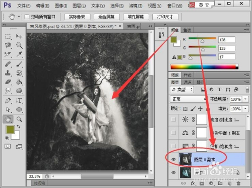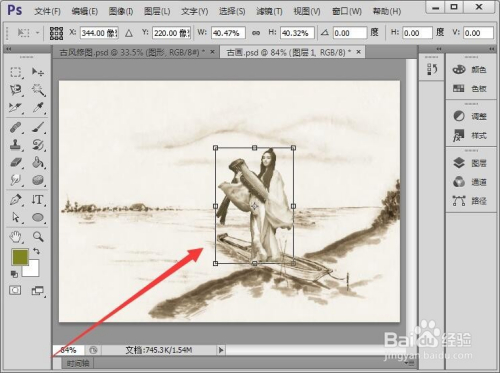 最后,设置大好人物的位置,一张古风图就做好了。