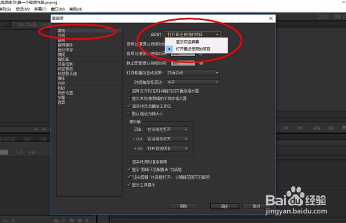 在首选项对话框中,选择启动,选择启动时直接打开比来项目