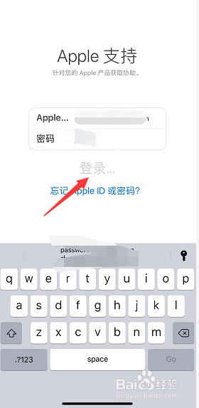 进入apple撑持,输入你的apple ID进行登岸,如下图所示