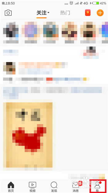 首先比力简单的一点就是可以直接下载最新版本,但在微博中也可以手动进级,打开微博后点击右下角【我】。