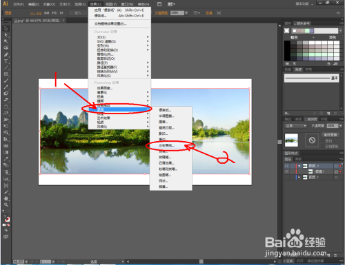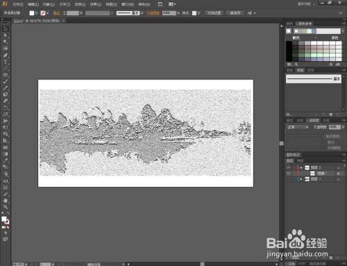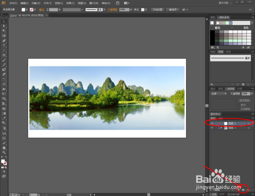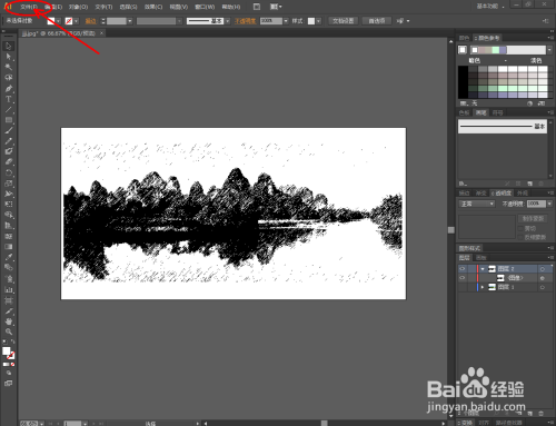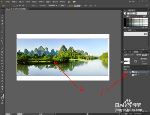 打开Adobe Illustrator CS6软件,将我们找好的一张图片在软件中打开。点击右边图层工作栏中的【新建图层】,新建一个图层“图层2”。在图层1中复制图片元素,埋没“图层1”后,点击“图层2”进行粘贴(如图所示);