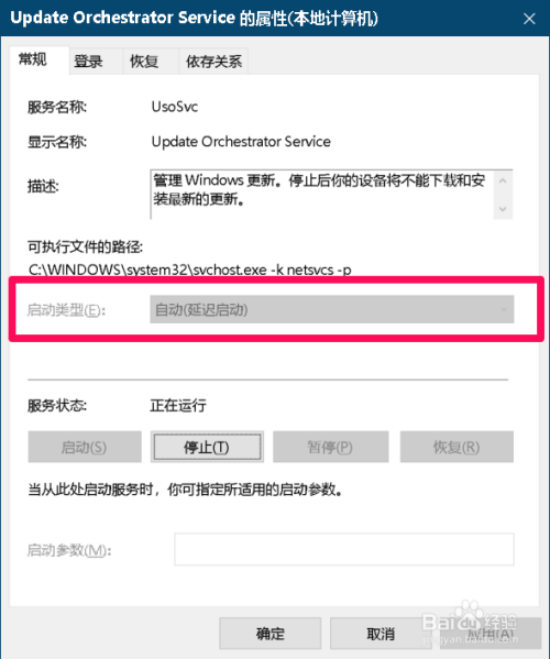 打开当地办事 - Update Orchestrator Service,可以看到已经恢复系统默认状况。