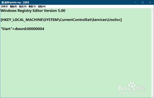 第二步:建造一个 禁用Update.reg 注册表文件添加到注册表中