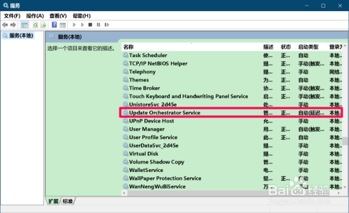 从头启动计较机,进入系统桌面今后,打开当地办事,找到 Update Orchestrator Service办事,点击打开可以看到:
