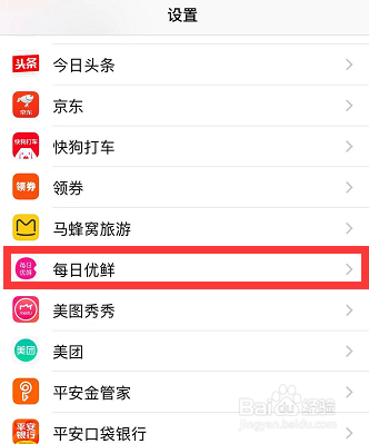 进入手机设置页面后,用手指按住屏幕往上滑动,在页面下方的APP中细心寻找,找到每日优鲜APP。