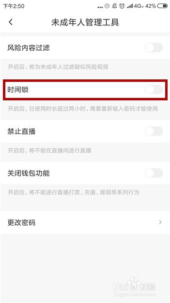 在未当作年人办理东西界面中就能找到【时候锁】功能了,初始是封闭的,点击这个功能。